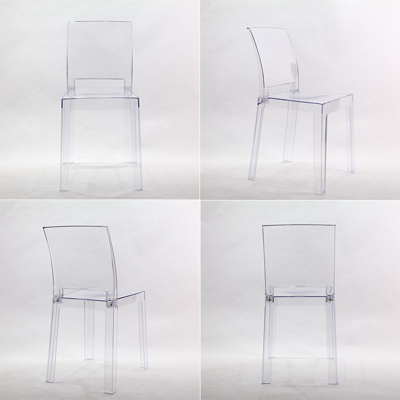 Diese Heiratsstühle werden völlig vom Acryl oder vom Lucite gemacht. Geiststühle werden häufig mit gerundeten Rückseiten gesehen,