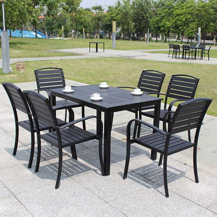 | Material: | Aluminiumrahmen mit plastice Holz | Feld: | Aluminiumrahmen/Stuhl; KD-Struktur/-tabelle. Des im Freien überzogenes Ende Pulvers. |