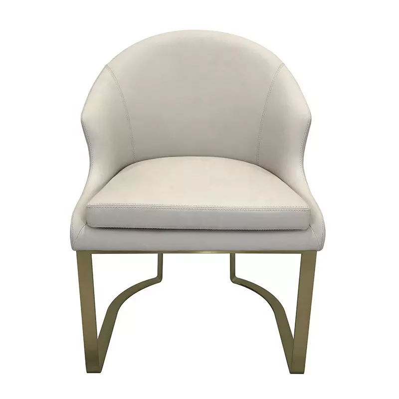 Luxusgoldedelstahl-Metallrahmen-Bein-beige lederner speisender Stuhl