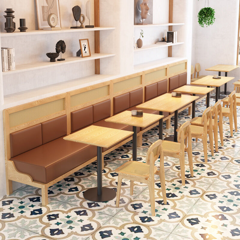 Customized New Design Woven Rattan Chair and Sofa Plywood Table Restaurant Cafe Sets 14
